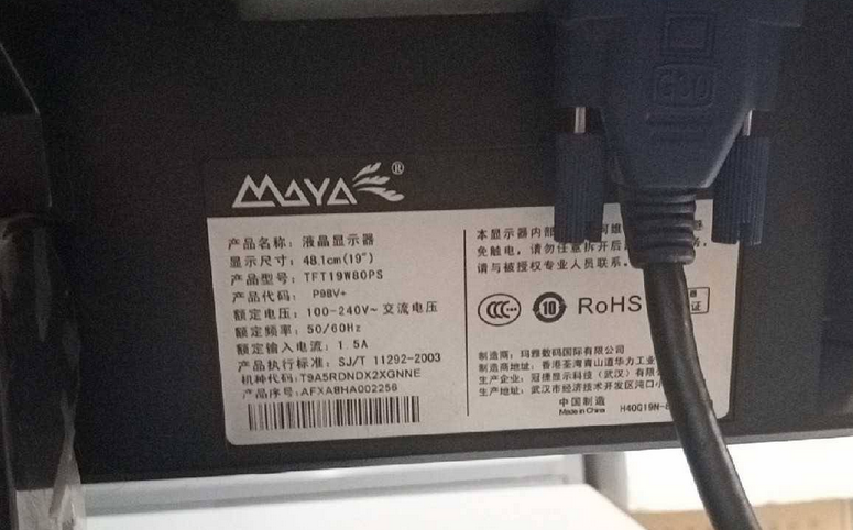 显示器玛雅牌子效果不错,成色不错。VGA接口,送上门30块运费。